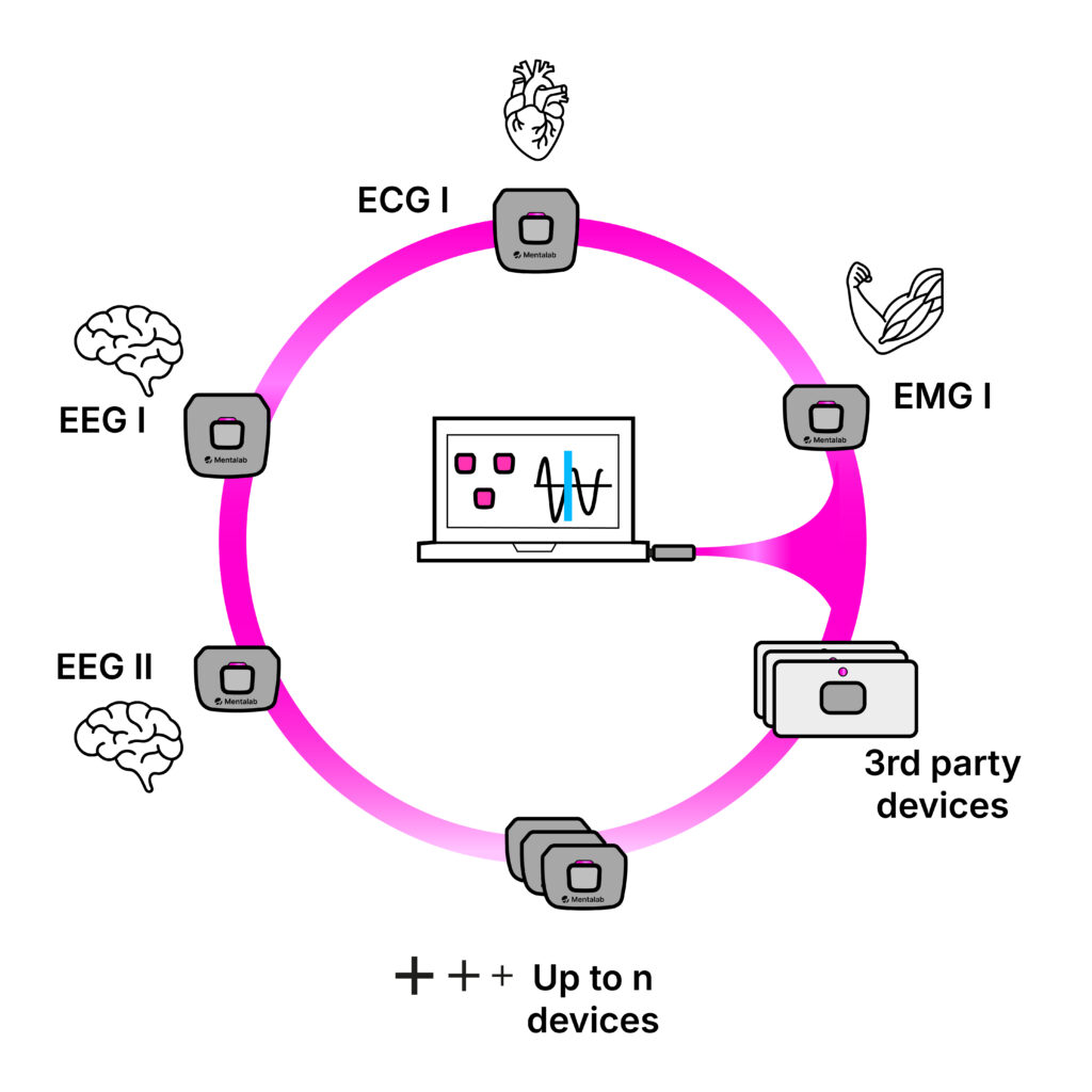 From multi-person EEG to multimodal physiology, all signals are in sync – and everything wireless.